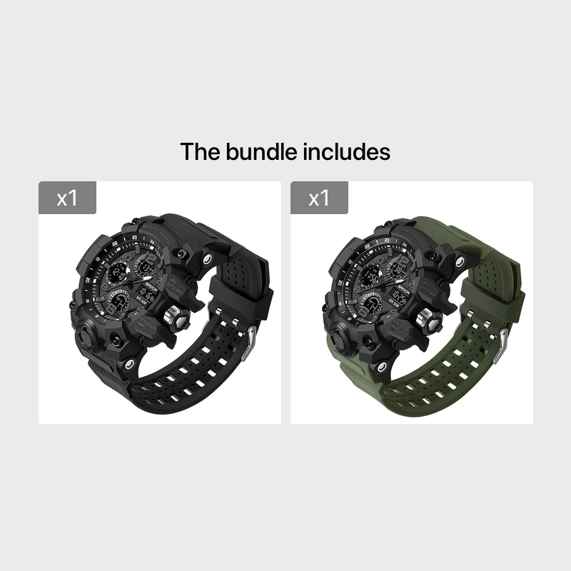 SANDA Men's Sports, Water-Resistant 50m, Dual Display Quartz Movement, Round PC Case, Faux Leather Strap, Luminous Hands, Battery Powered Electronic Wristwatch