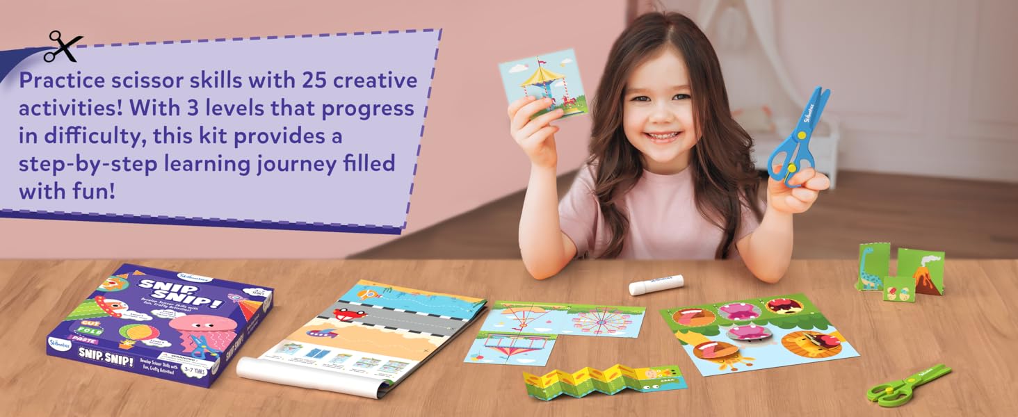 Help your little one learn and play with confidence! The Scissor Skills Activity Kit includes 25 exciting paper-cutting projects and 2 child-safe scissors, designed to strengthen fine motor skills, focus, and creativity. Perfect for boys and girls ages 3–7, this fun craft set turns playtime into learning time — making every snip, fold, and paste a step toward imagination and growth.
