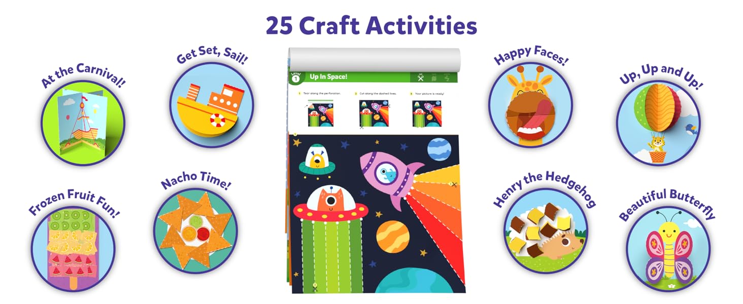 📚 25 Creative Activities – Cutting, folding & pasting crafts for hours of fun learning.