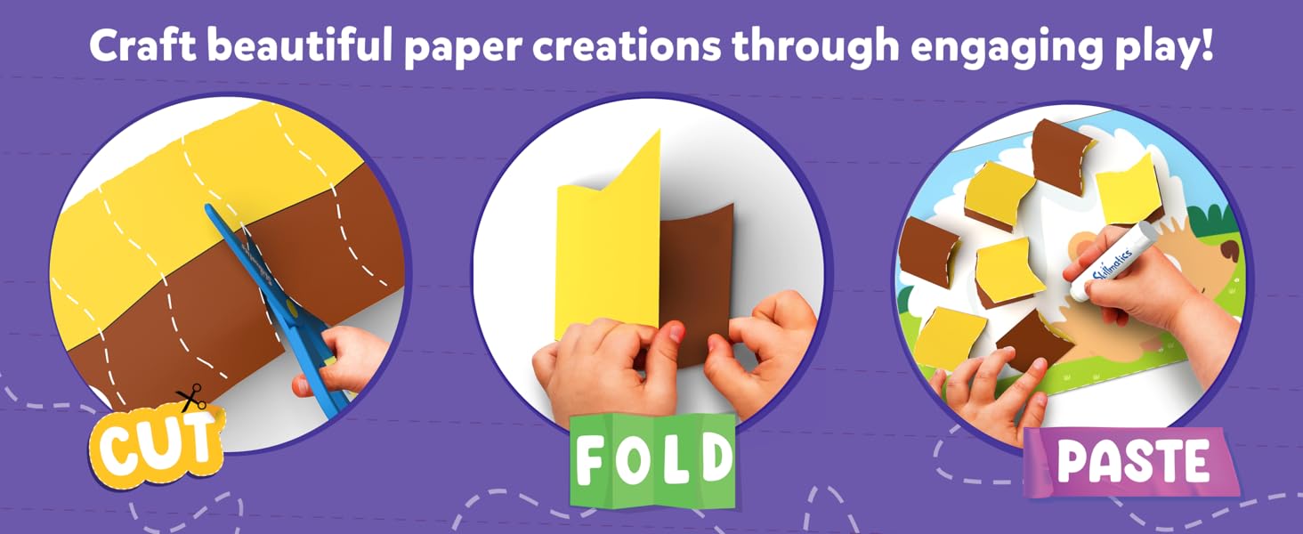 With 2 child-safe scissors and colorful, hands-on projects, kids will explore the joy of cutting, folding, and pasting while building confidence in their abilities. Each activity helps strengthen fine motor skills, hand-eye coordination, focus, and creativity, making it the perfect blend of education and entertainment.